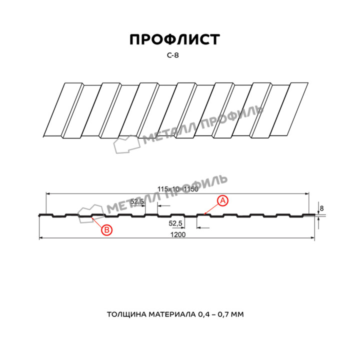 Профлист Металл Профиль С-8 0,4 Полиэстер матовый двусторонний RAL 8017/8017 Коричневый шоколад | A
